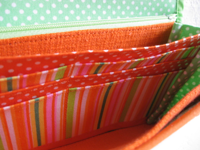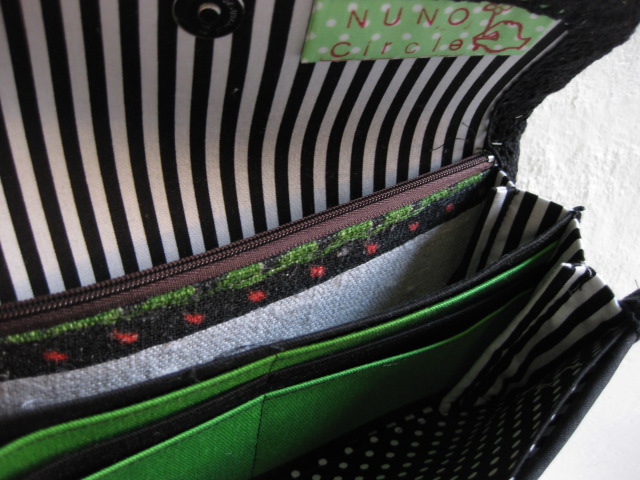 カード入れは黄緑と黒、手前の仕切り部分は黒の水玉です。