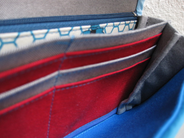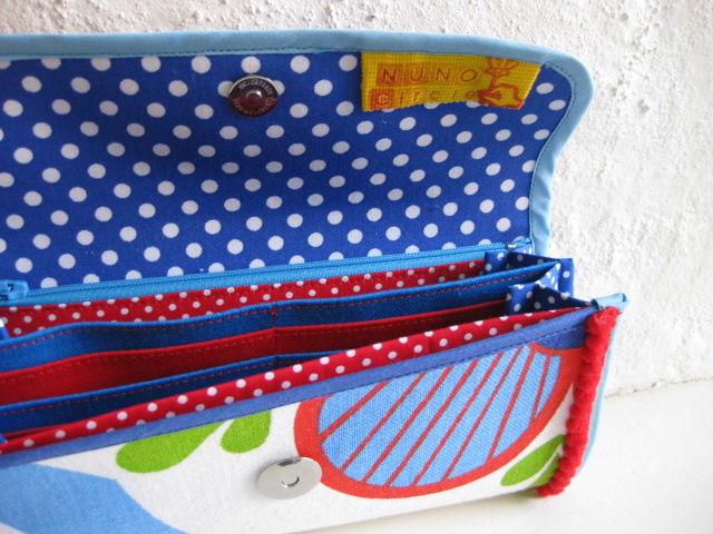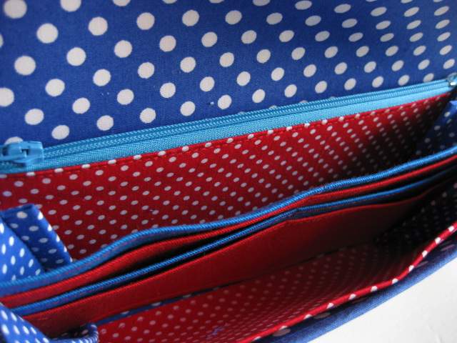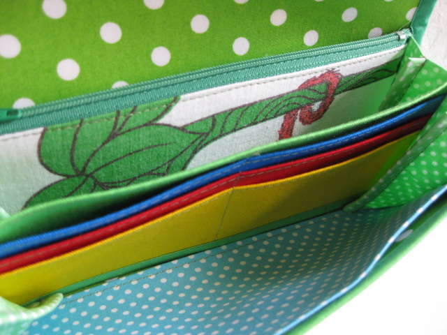 仕切り部分は水色の水玉、そしてカード入れは緑・青・赤・黄色とカラフルです。