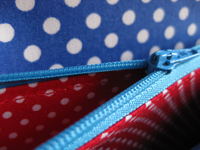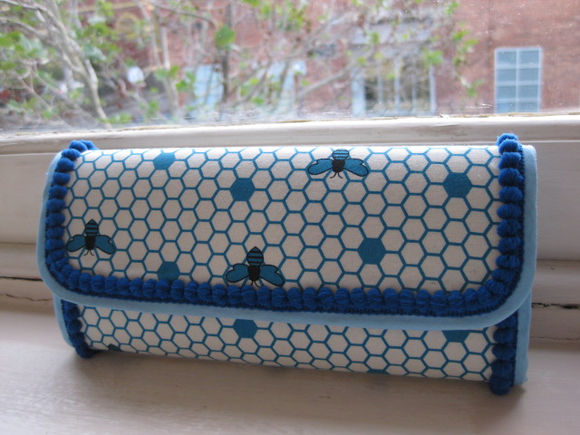 ファスナー小銭れにも表と同じBeeの生地を使っています。