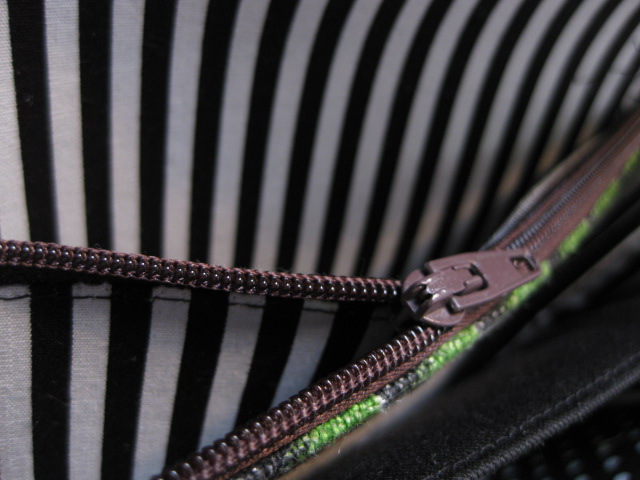 ファスナー小銭入れの中は緑のストライプです。