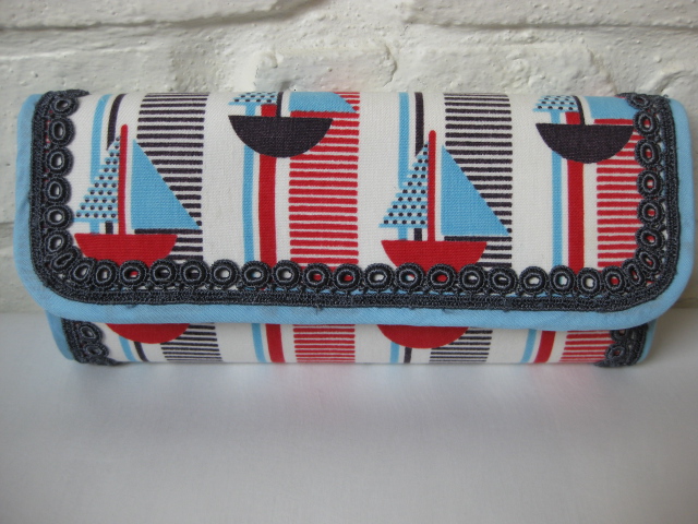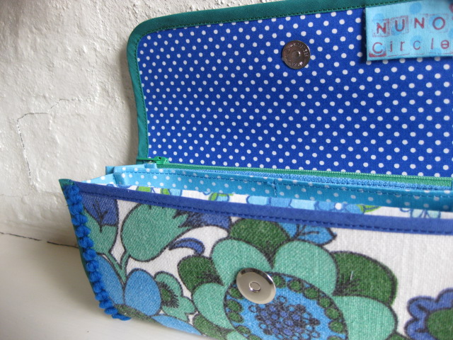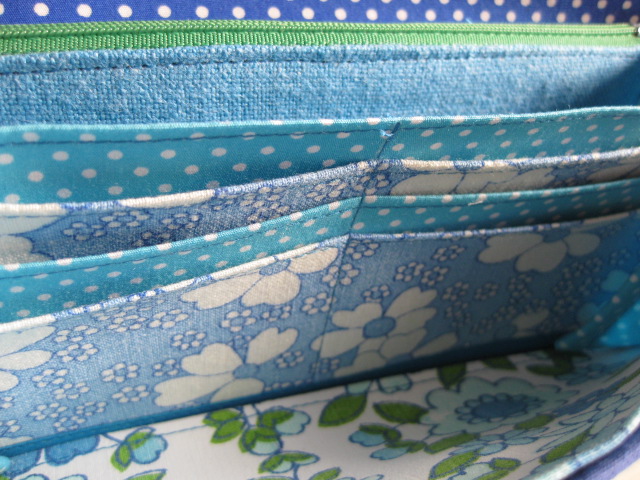 仕切りとカード入れに異なる柄を使いました。ブルー系でまとめてあります。